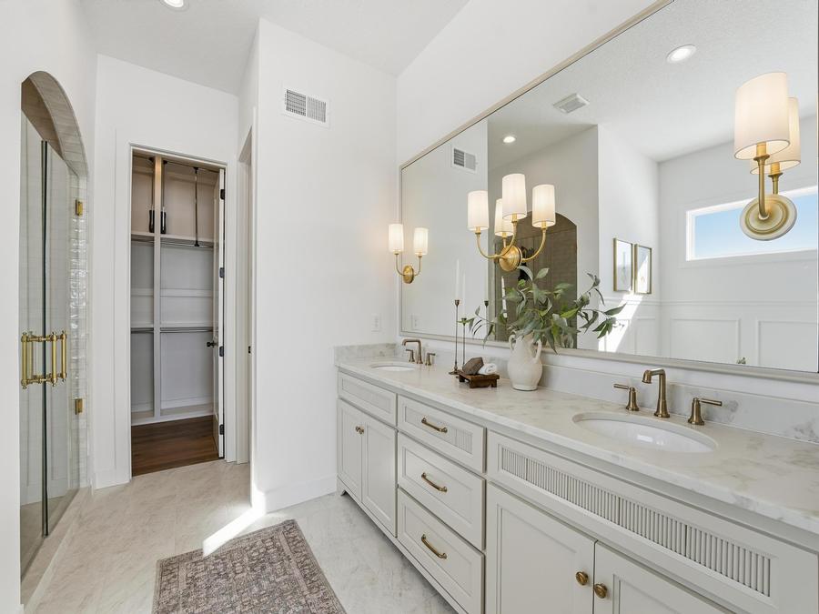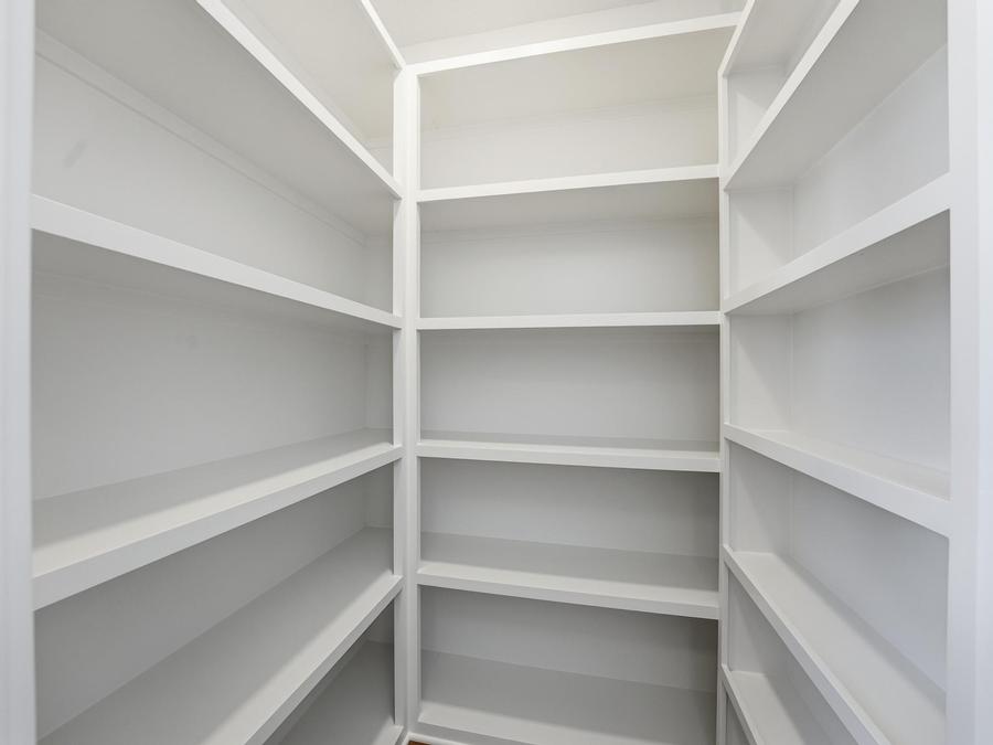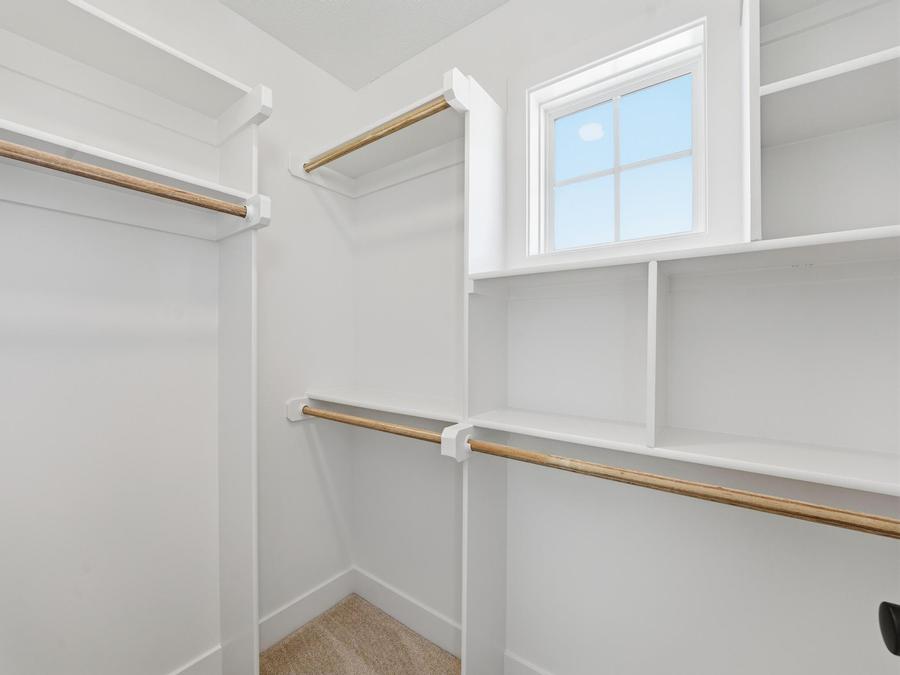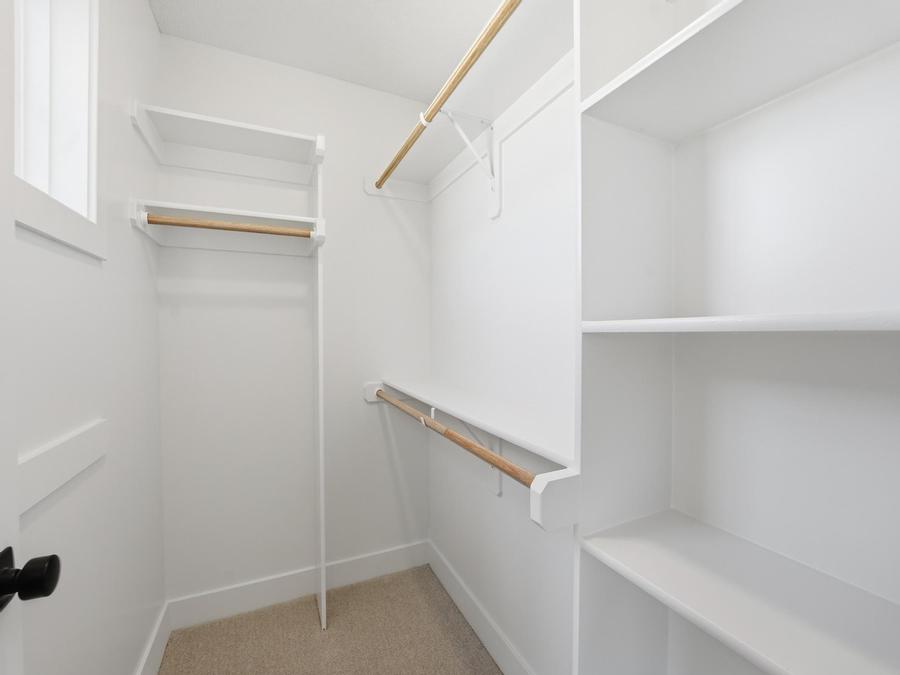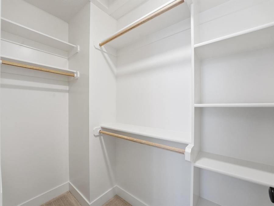 - Walk-in Closet in Master Suite with Triple & Single Height Rods and fixed stack shelving