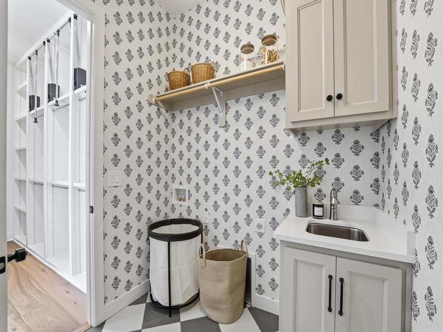 - Upper cabinet, and hanging rod with shelf, plus level 1 quartz or Granite Countertop in Laundry