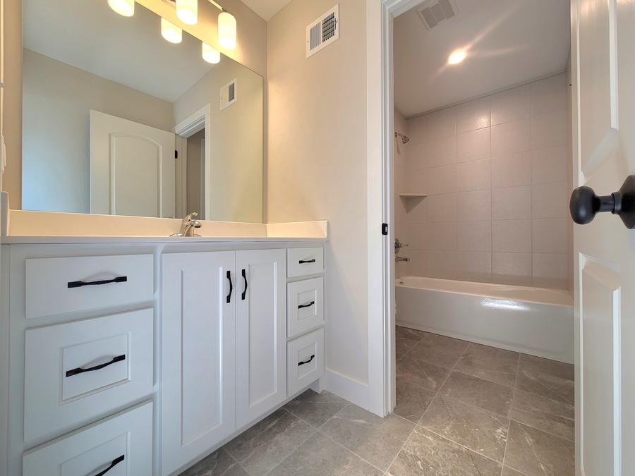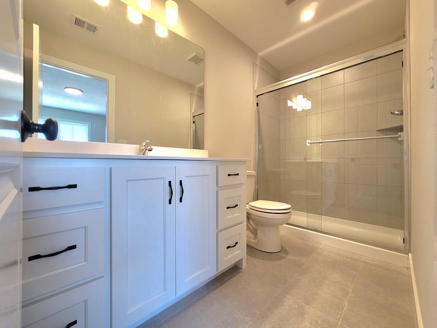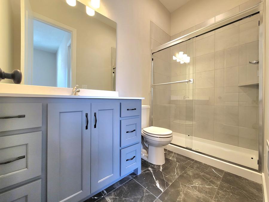 - Standard Tile floors in Bedroom 3 bathroom with acrylic shower pan & tiled shower walls – 5 ft bypass shower door