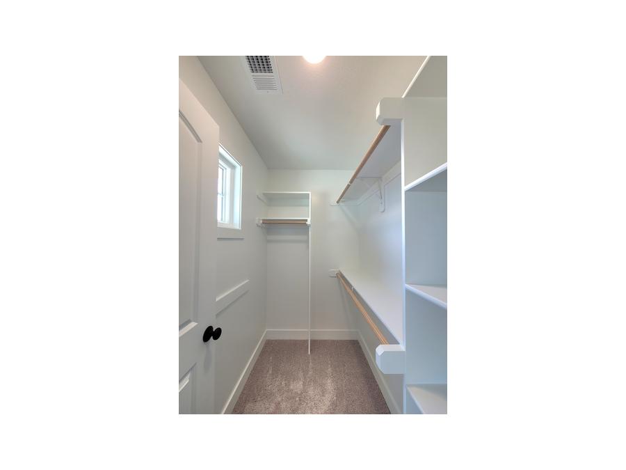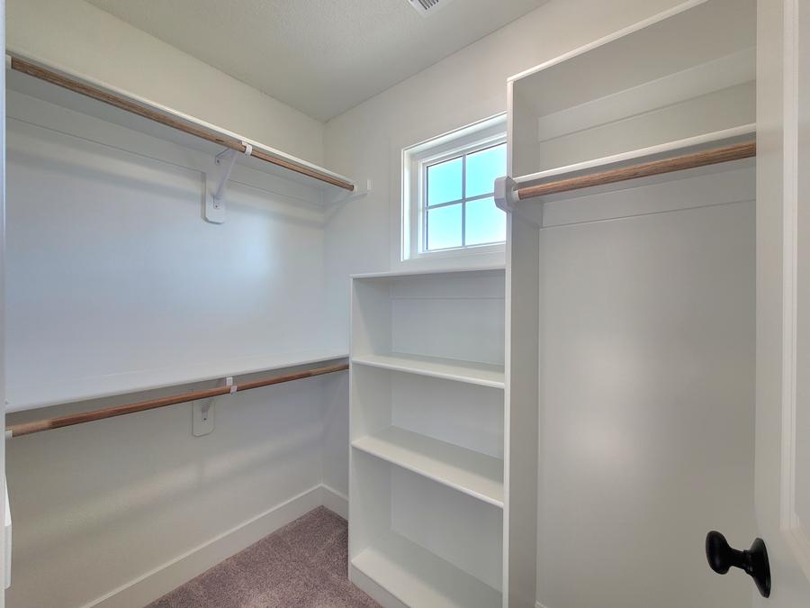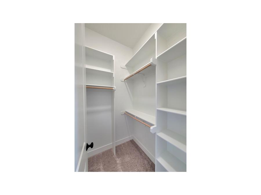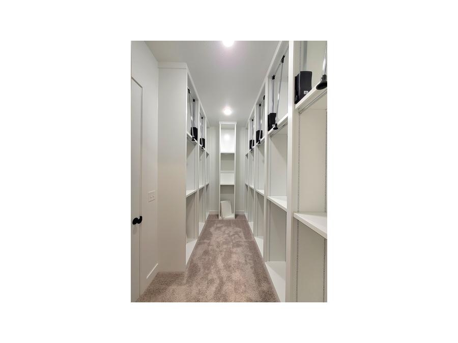 - Walk-in Closet in Master Suite with Triple & Single Height Rods and fixed stack shelving